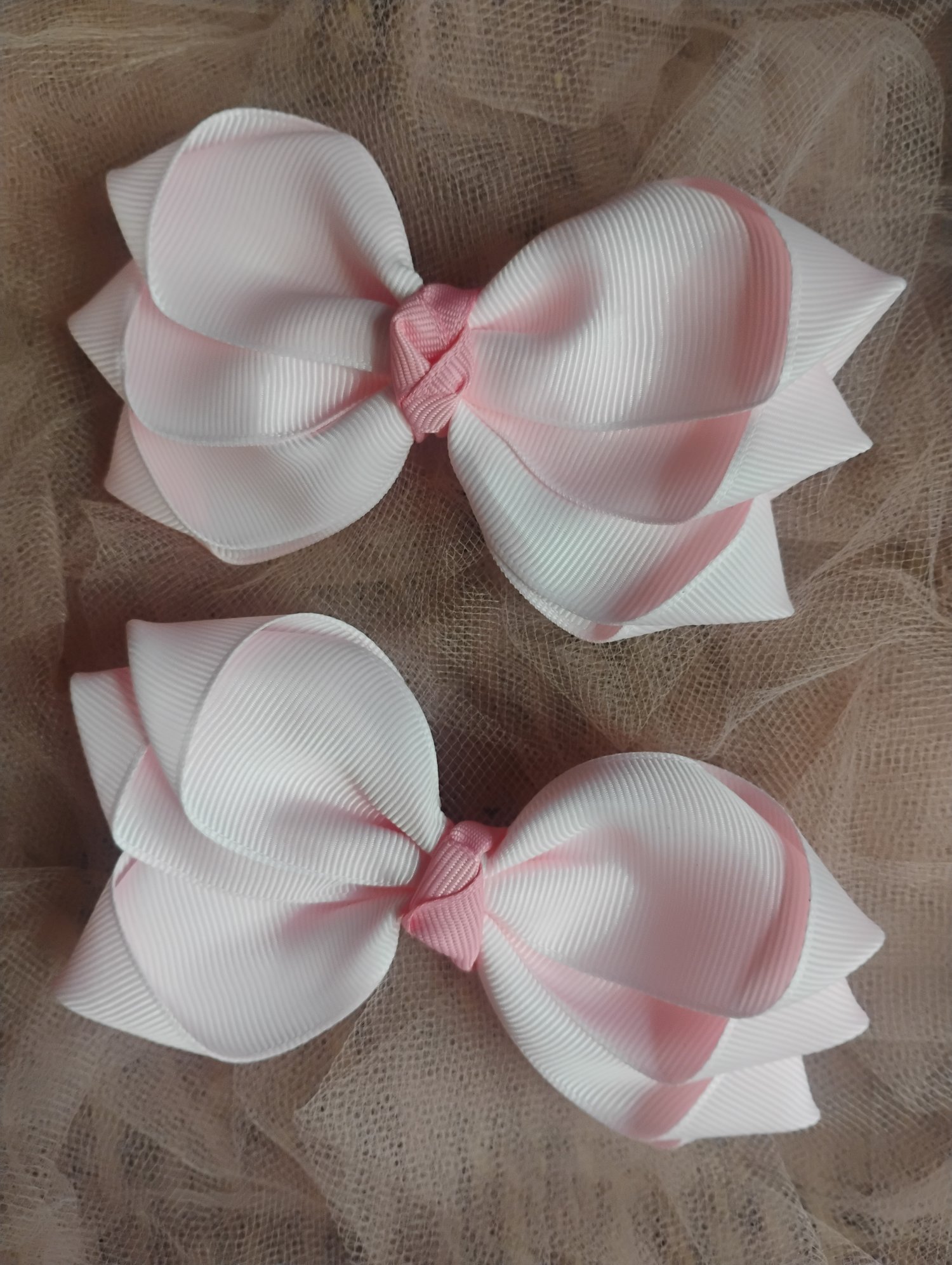 Milaya's Light Pink Hair Bow is made from 1.5 grosgrain ribbon and comes with an alligator clip. This hairbow is about 5'' inches.