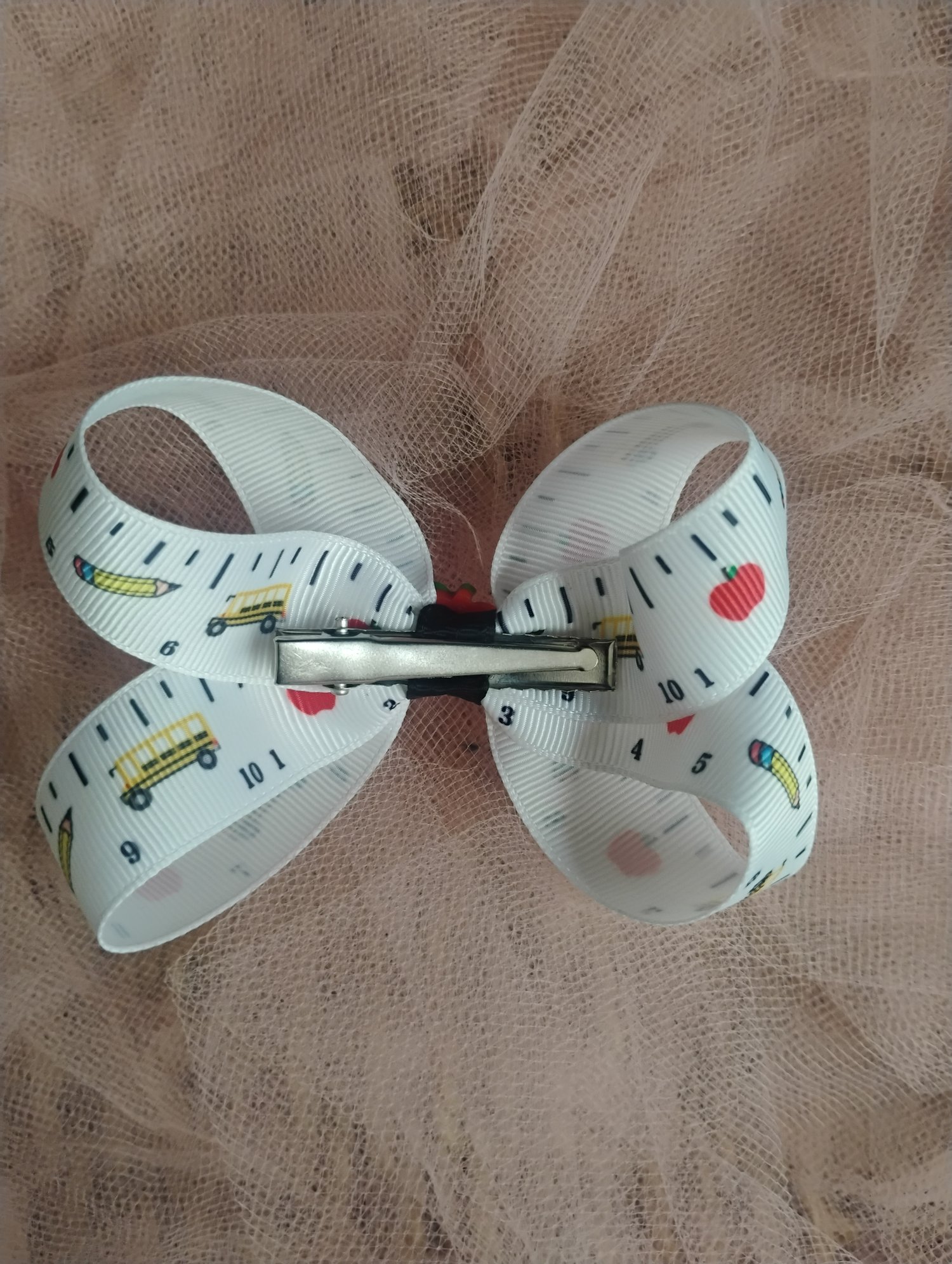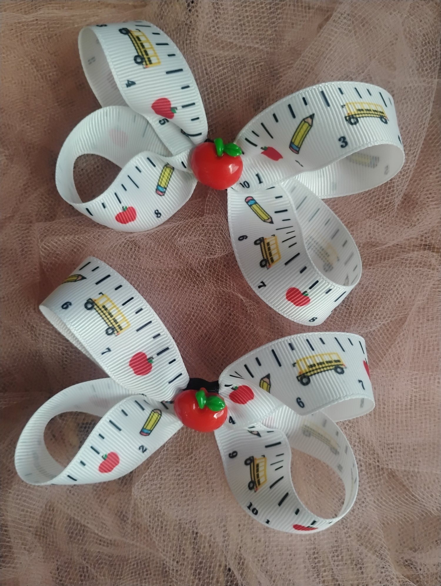 This is a 4 inch back to school hair bow, this hair bow has a red apple in the middle and its made from 7/8 grosgrain ribbon,